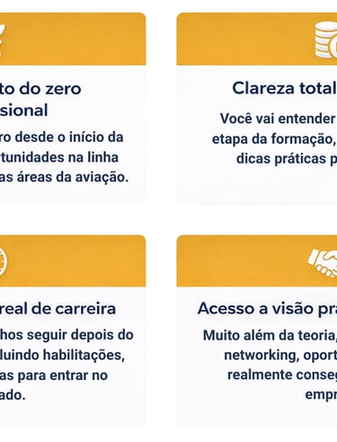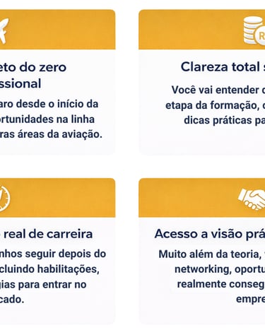 Sim. Ele foi feito principalmente para quem está começando do zero e quer entender todo o caminho da aviação, incluindo custos, passos e decisões importantes.
