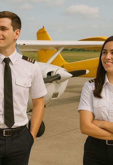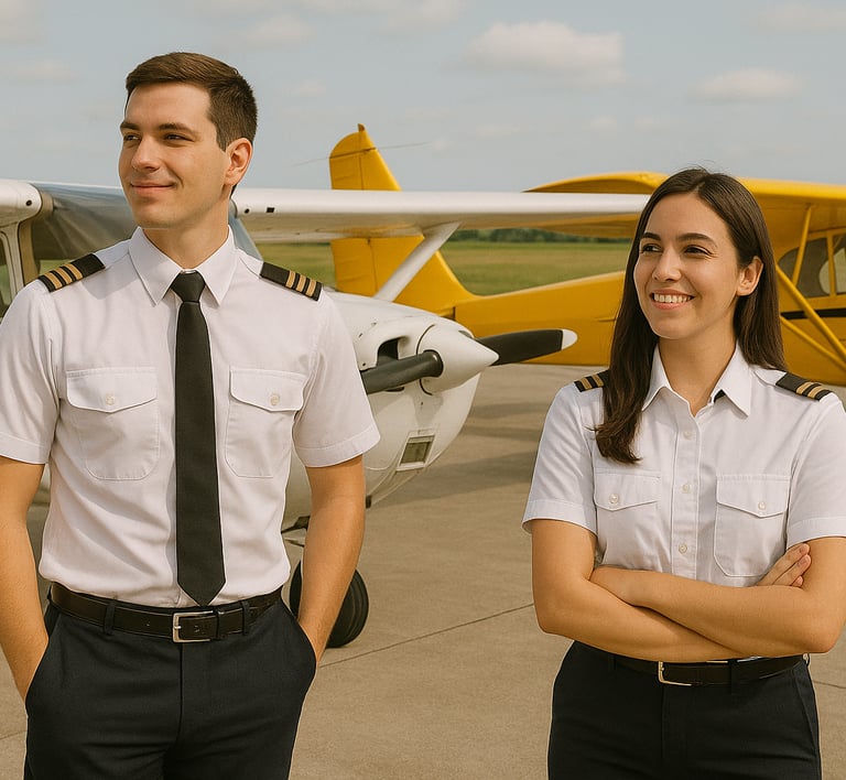 Formação prática de PP com aeronaves C152 ou Piper J3, pacotes acessíveis e alojamento gratuito.