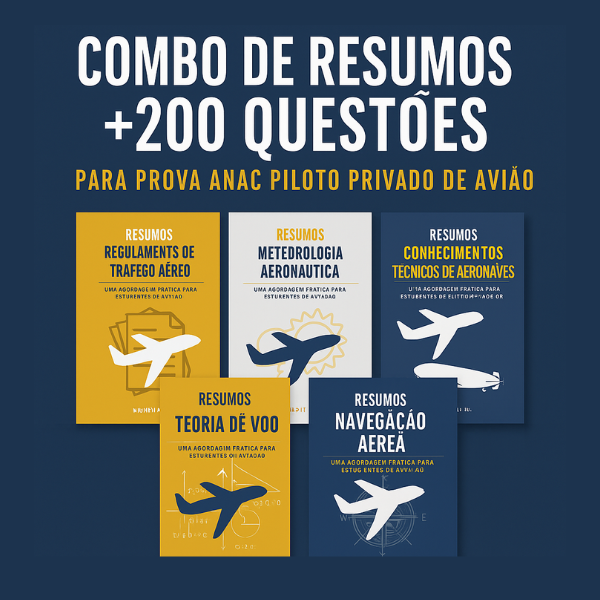 Estudar para o curso de Piloto Privado (PP) exige organização. Por isso, preparei uma coleção com 5 livros digitais que reúnem de forma objetiva todo o conteúdo cobrado pela ANAC, os mesmos que me ajudaram a conquistar 92% de acertos.